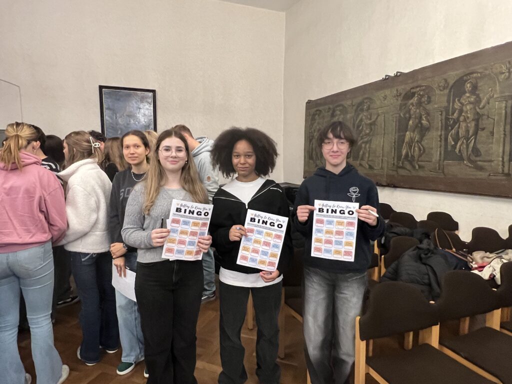 Today from eight o’clock to half past nine we did games to get to know each other. It was fun and everybody participated. I mean by this that everyone did his best to have a nice time.