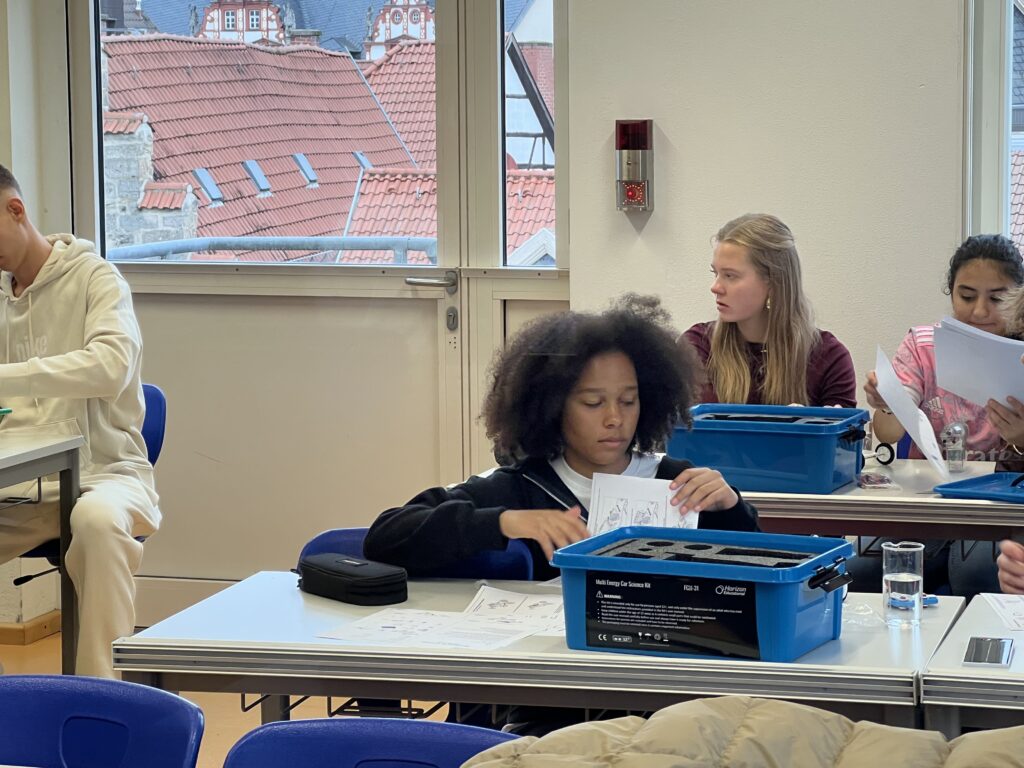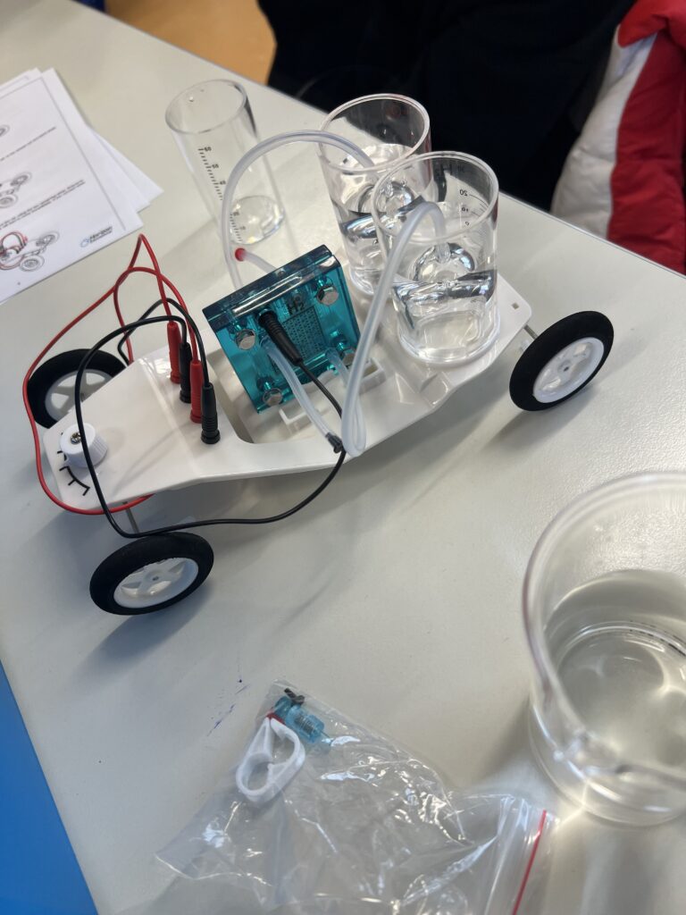 After the games, we went to the chemistry room and as a group we experimented to create renewable energy. At the beginning we wanted to use an umbrella but there wasn’t enough time. For this reason, we used a battery.