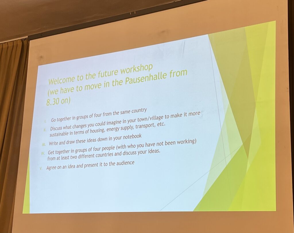 This morning, we talked about the changes that should be made in Luxembourg for a more sustainable lifestyle. We discussed how, in everyday life, people could reduce waste by using reusable bags, bottles, and containers, and by buying more local and seasonal products. In terms of transport, we agreed that more people should use public transport, bicycles, or car-sharing instead of individual cars to reduce pollution and traffic.